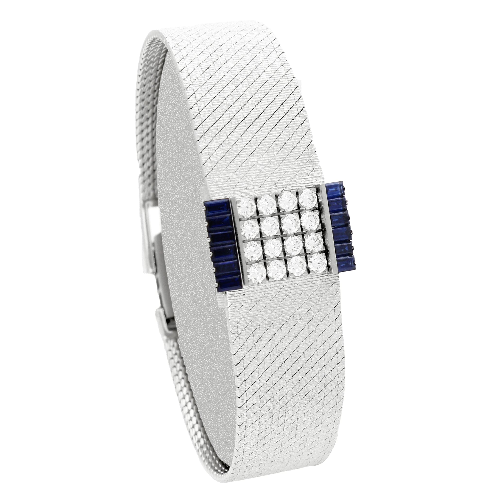 18ct white gold Patek Philippe ref. 3319 diamond & sapphire set bracelet watch. Made 1967—