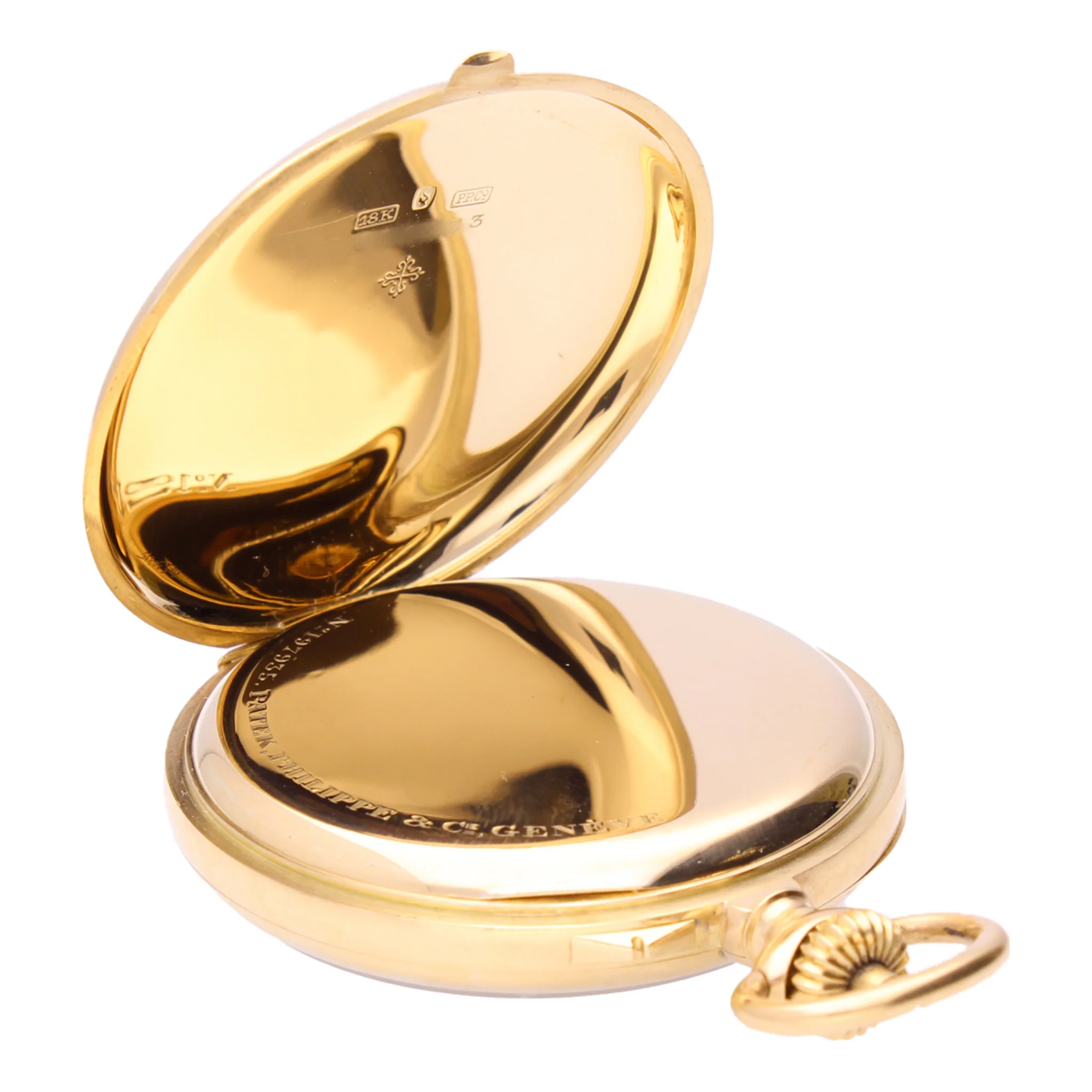 18ct yellow gold Patek Philippe open face chronograph pocketwatch. Made 1924